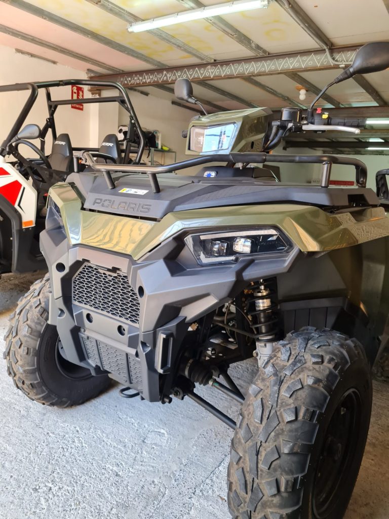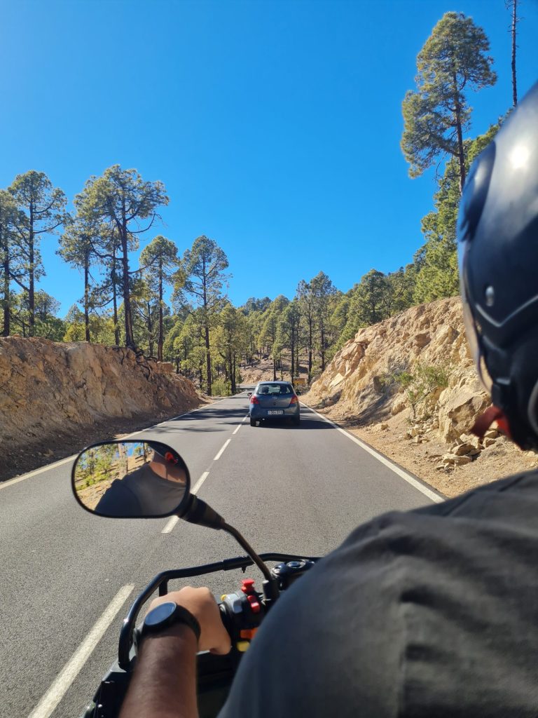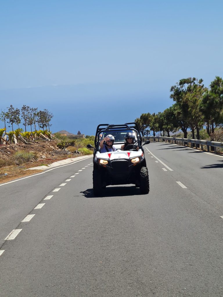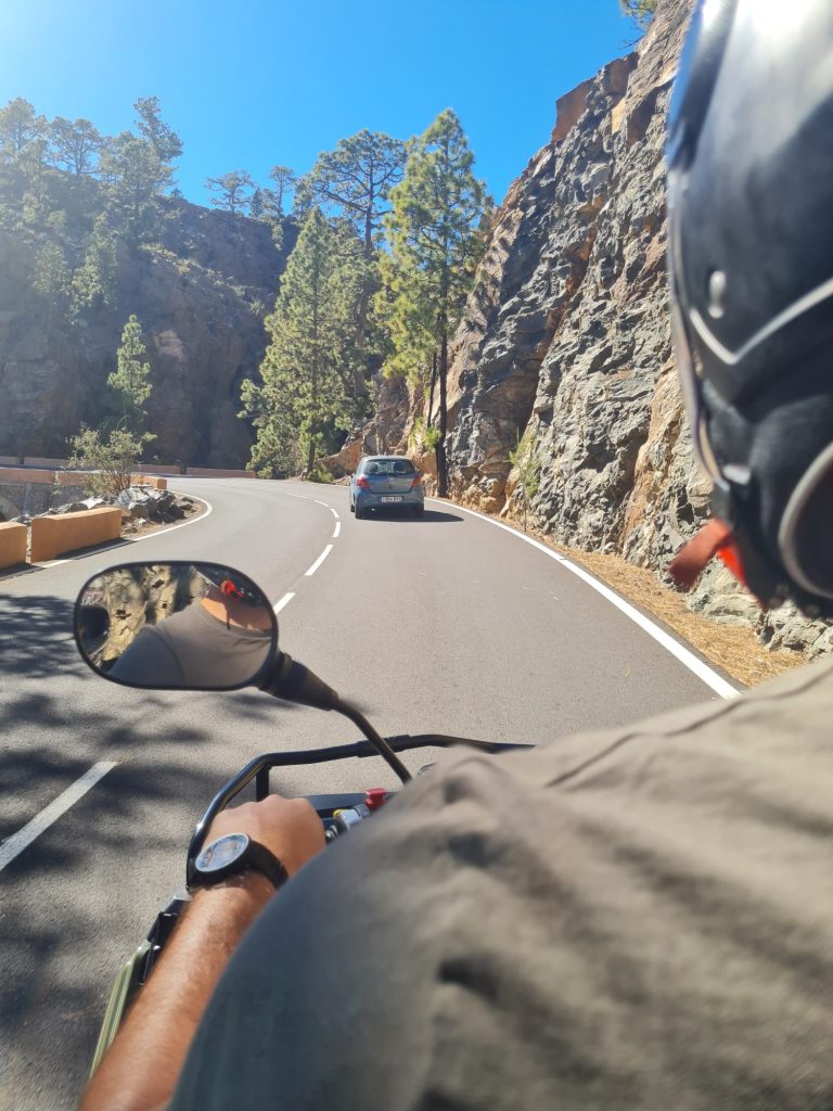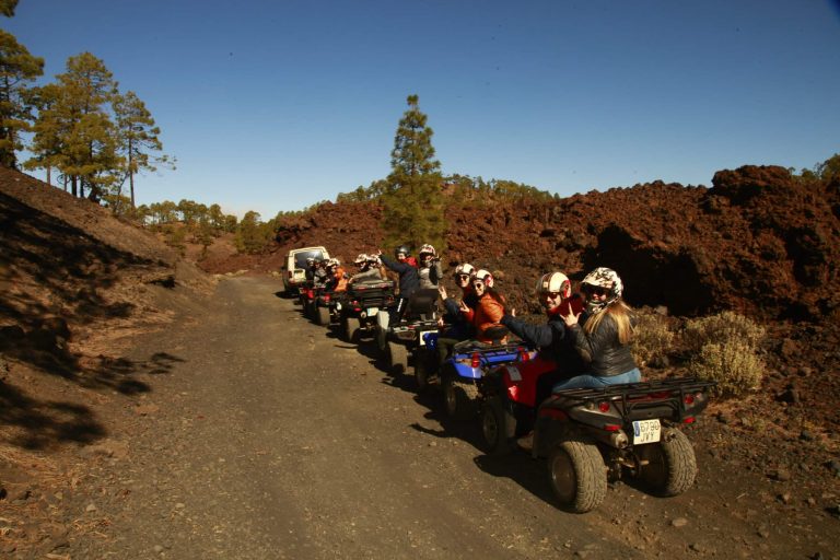 Genieße Action und spüre den Fahrtwind auf einem ca. 300 ccm starken Quad der Marken Kimoko, Polaris oder Kawasaki im Süden von Teneriffa. Solltest Du einen Transfer von Deiner Unterkunft in der Umgebung von Los Cristianos oder Costa Adeje gebucht haben, wirst Du gemeinsam mit anderen Teilnehmern zum „Büro“ der Firma gebracht. Dort gehen dann die Vorbereitungen los, das heißt, dass Du Deinen kostenlos zur Verfügung gestellten Helm, Handschuhe und eine Jacke (nach Bedarf) erhältst und Deine Sicherheitsanweisung bekommst. Der Fahrer des Quads wird hier noch seinen Personalausweis und seinen Führerschein vorzeigen müssen und schon geht’s in maximaler Gruppengröße von 7 Quads los.
